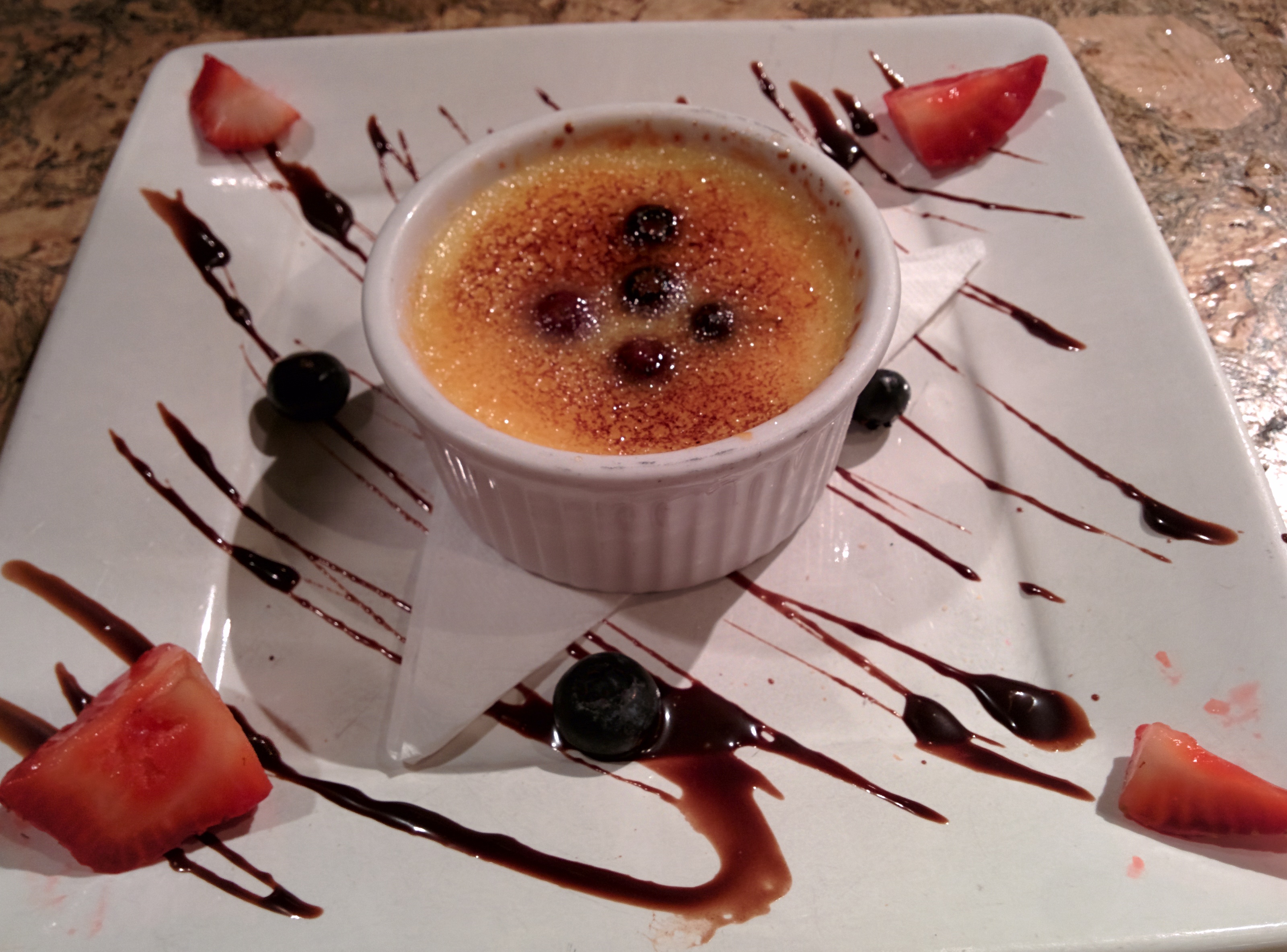 Lastly was the creme brulee. I hate creme brulee. The crust is usually too hard and it’s too sweet. The one at Russell’s Bistro had a very nice crust on it, it wasn’t too sweet, and the cream to egg ratio combined to ensure that one ingredient didn’t dominate the other too much. Also, it was just pretty to look at.