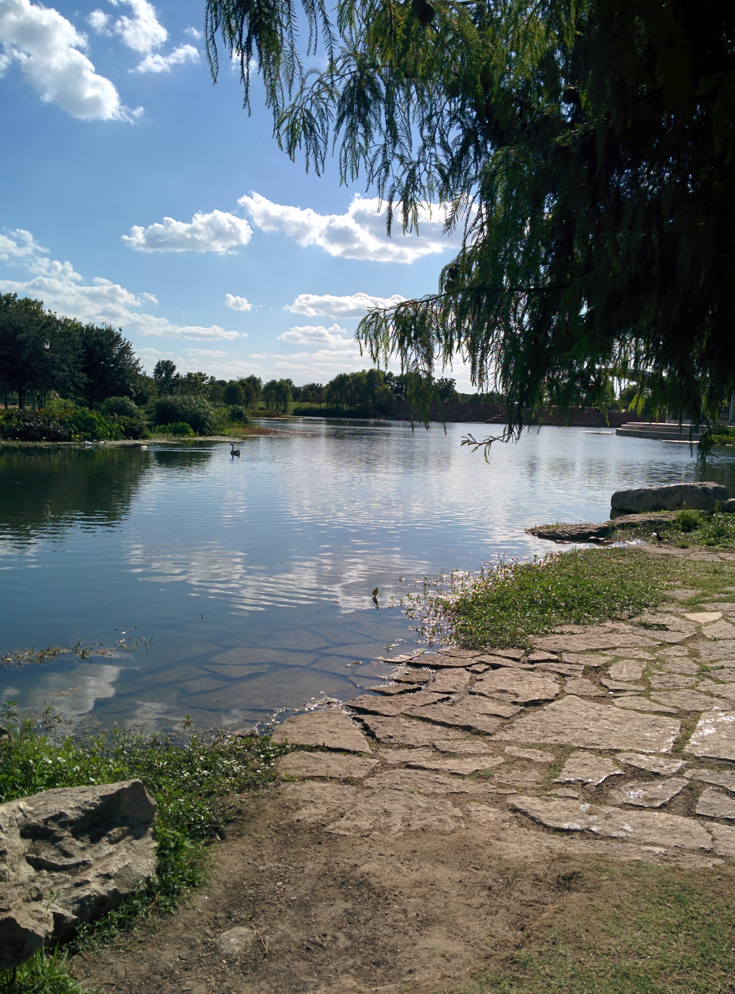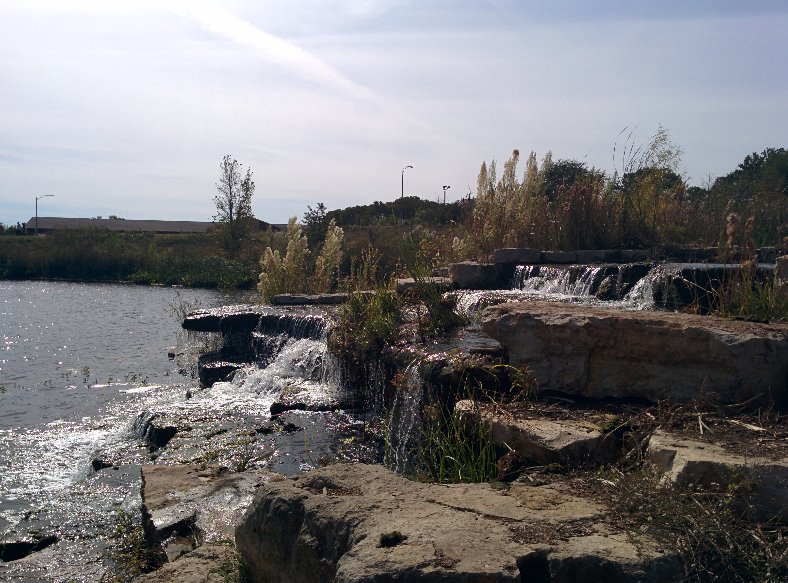 V. The park itself: It’s drop dead gorgeous. Beautiful, modern homes surround the park. There is so much open space that kids’ soccer leagues are able to hold games here from time to time. There is also a lot of biodiversity. Turn your head one way, and you’ll see the lake. Another way, and you’ll see flowers, trees, and tall, wavy grasses. Hike down a ways, and you’re at a small waterfall. Birds constantly whizz by over head, and the ducks and geese here do not care one bit how close you get to them.