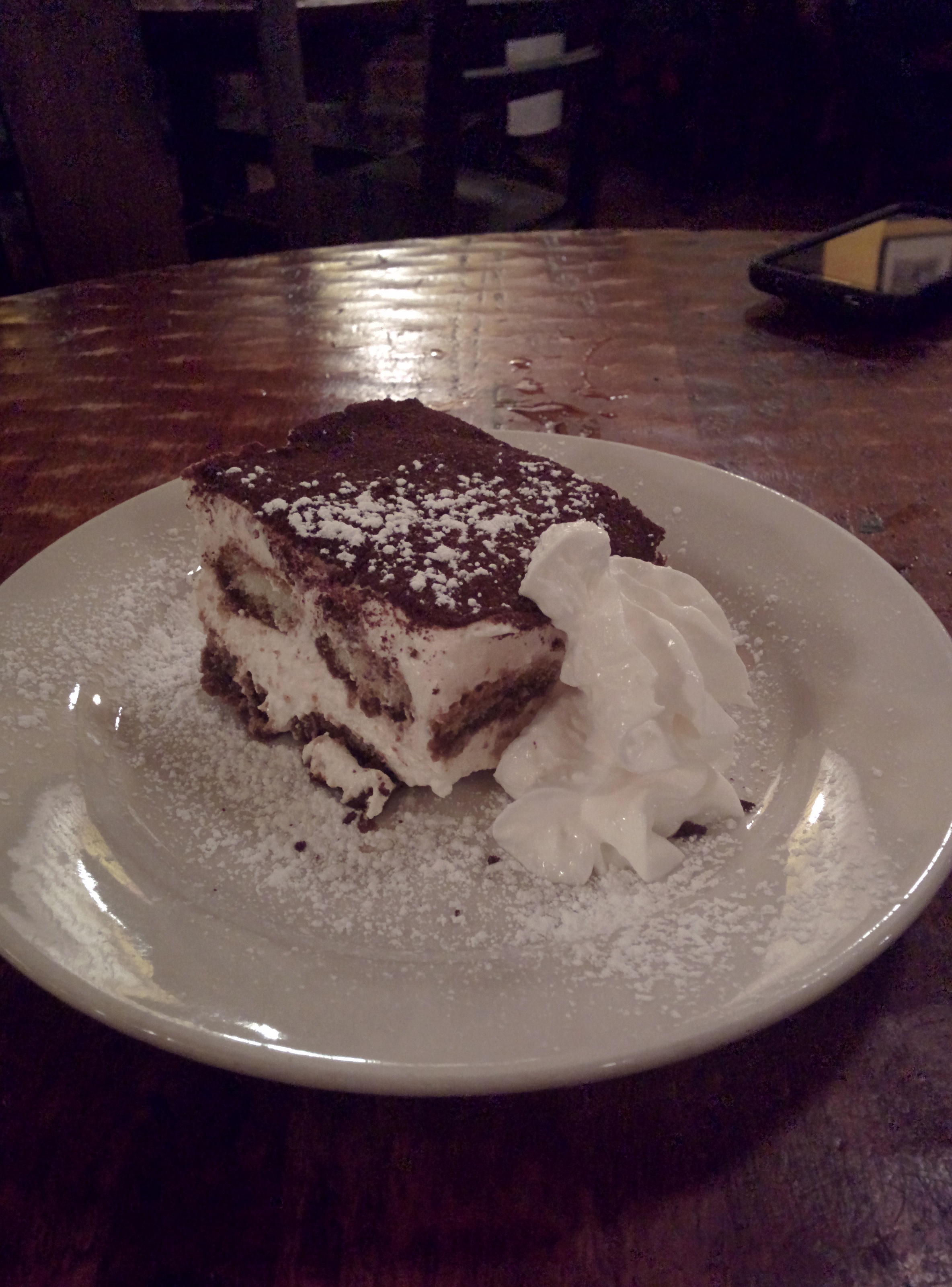 This tiramisu was almost good enough to make up for everything. The coffee taste was strong, the way I like it, and the way it should be. The center was light and fluffy, and everything else surrounding it was a very nice complement. It was so good I didn’t want to share it with my friends initially.