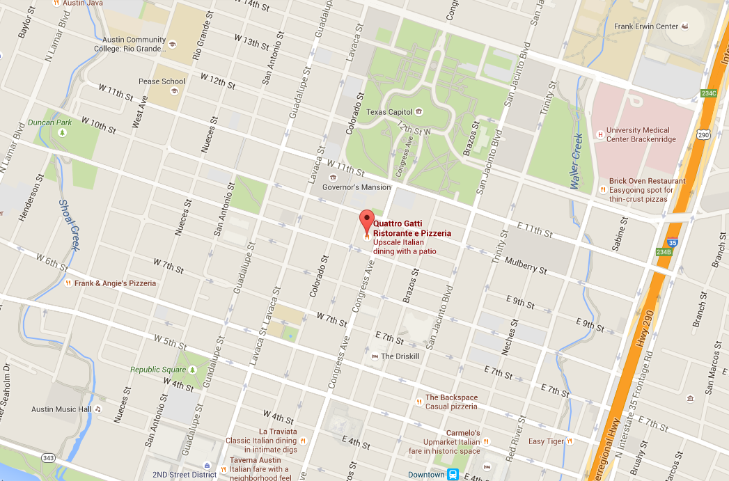 Tristan, Natasha, and I made a reservation for 7:15PM on a Friday at Quattro Gatti. It was the only time that could fit all three of our busy schedules, but it ended up making our lives much easier. It’s no secret that parking downtown is hectic during business hours and on weekends whenever there’s an event, or when 4th and 6th street open up for the night crowd. 7:15 was perfect. I parked my car on the street just behind the restaurant with ease. With 10 minutes to spare before the reservation, I was able to walk over to the Capitol to take some pictures, and head back with three minutes left over. The streets were so empty that even Ryan Gosling and Rachel McAdams could lay down in the middle of them.